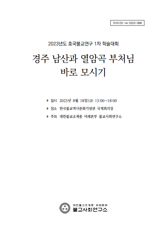 2023_호국불교연구 1차 학술대회 "경주 남산과 열암곡 부처님 바로 모시기'' 자료집