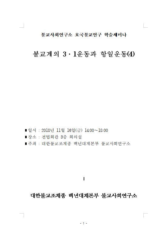 ○ 주 제: 불교계의 3·1운동과 항일운동(4)