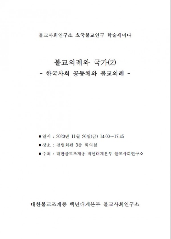 - [불교사회연구소] 호국불교연구 하반기 세미나 자료집2020.11.20.pdf (1.6M) 136회 다운로드 | DATE : 2021-01-04 16:34:32