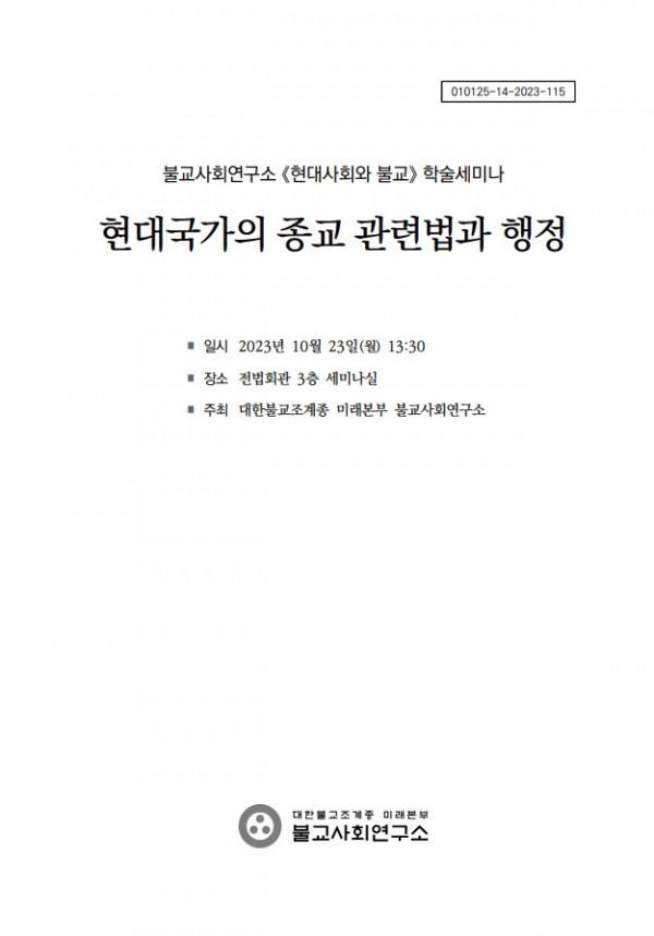 2023_호국불교연구 《현대사회와 불교》 학술세미나 "현대국가의 종교 관련법과 행정'' 자료집