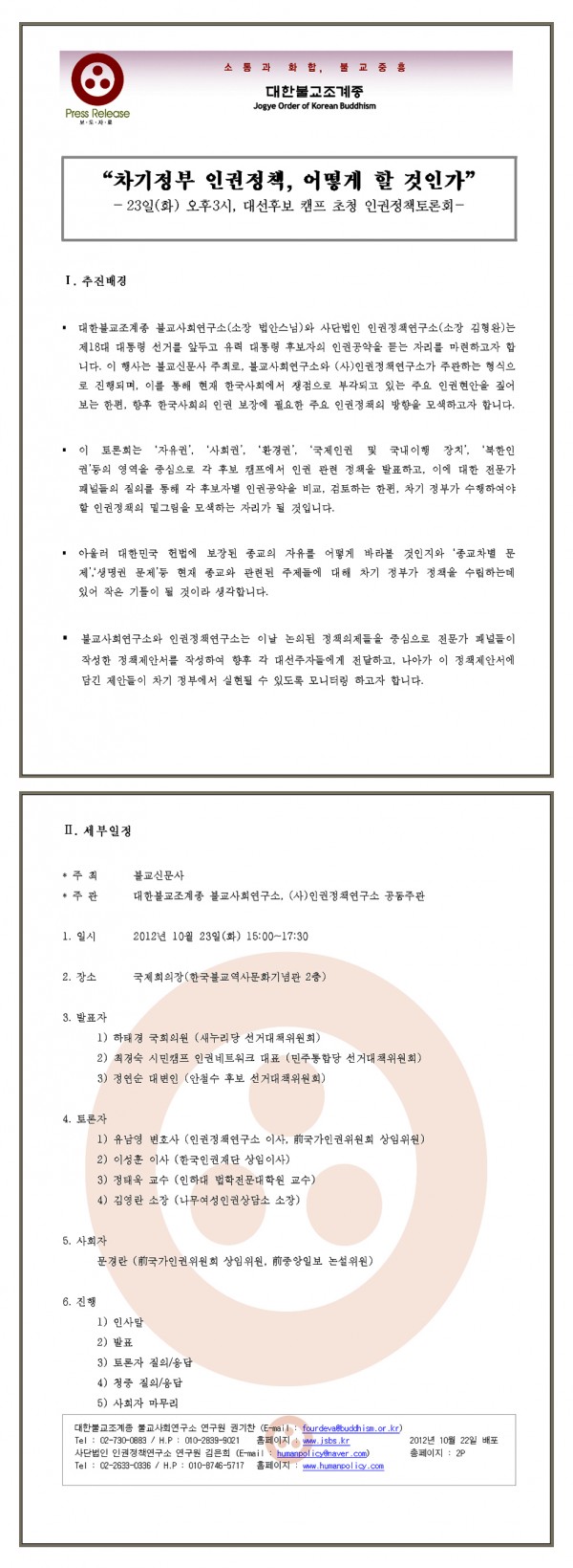 [보도자료] 대선후보 캠프 초청 인권정책토론회(2012.10.23(화) 오후3시) 페이지 정보 작성자 관리자 댓글 0건 조회 2,015회 작성일 18-12-21 15:23 본문 [보도자료] 대선후보 캠프 초청 인권정책토론회(2012.10.23(화) 오후3시) 목록 이전글대선후보 캠프 초청 인권정책토론회(10.23) 18.12.21 다음글불교사회연구소 2012년 여론조사 실시 18.12.21 댓글목록 댓글목록 등록된 댓글이 없습니다.