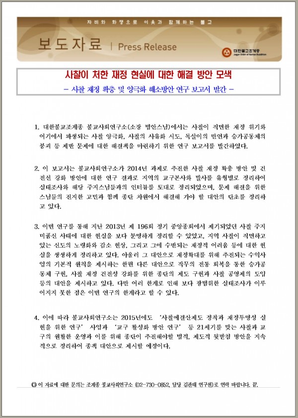 [보도자료]사찰 재정 확충 및 양극화 해소방안 연구 보고서 발간