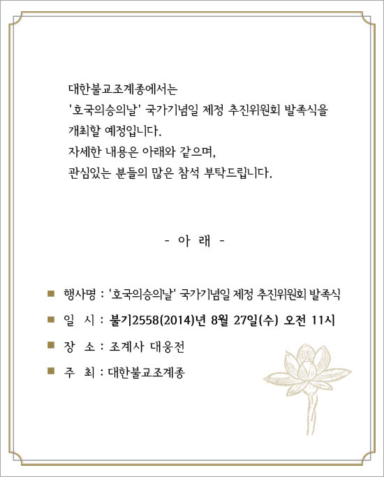'호국의승의날' 국가기념일 제정 추진위원회 발족식 안내