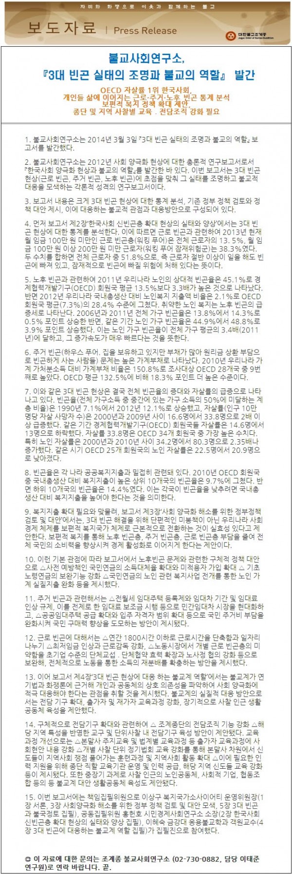 [보도자료]『3대빈곤 실태의 조명과 불교의 역할』발간 페이지 정보 작성자 관리자 댓글 0건 조회 2,322회 작성일 18-12-27 17:17 본문 [보도자료]『3대빈곤 실태의 조명과 불교의 역할』발간 목록 이전글[보도자료]호국불교사찰 자료집 『해남 대흥사 표충사表忠祠』발간 18.12.27 다음글'3대빈곤 실태의 조명과 불교의 역할 보고서' 발간 안내 18.12.27 댓글목록 댓글목록 등록된 댓글이 없습니다.
